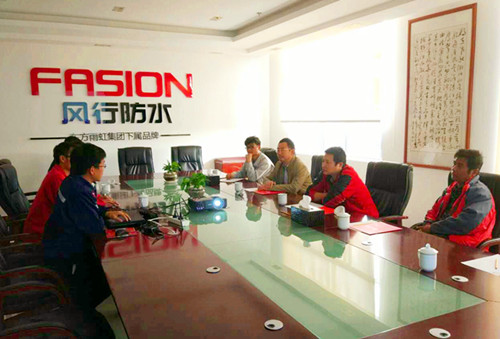 旅行竣事后,各人齐聚聚会室,陈坤为各人简要先容了公司的生长历程、现状及基地的产能实力,旅行组对盛行防水有了进一步的熟悉,并通过交流,相识了公司的产品系统及标准化施工,对盛行防水的产品质量、施工手艺、品牌信誉、服务系统给予了充分一定,体现希望有机会能就产品系统开展深入的手艺交流。